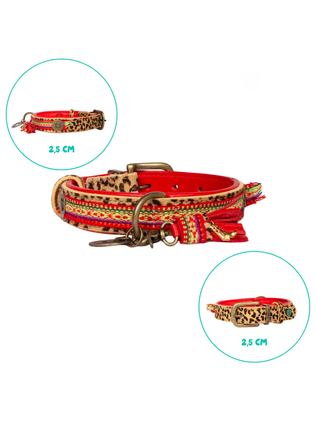 首輪の内側は表革、レオパード部分はヌバックを使用し、派手なのに高級感のある首輪です。